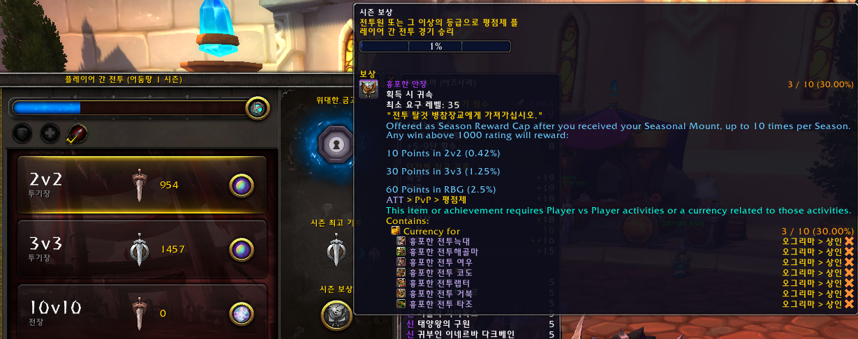 보통 어둠땅이 끝나고 다음확팩이 나올때쯤에서야 구매가 가능해지기 때문에 해당시즌에 얻어두는것이 좋습니다.