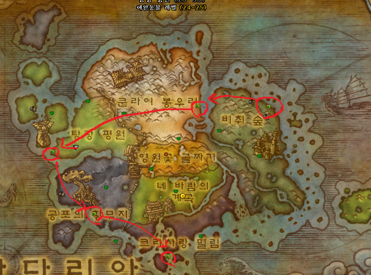 저같은 경우 이런식으로 비취숲에서 반시계방향으로 돌면서 작업 하였습니다.