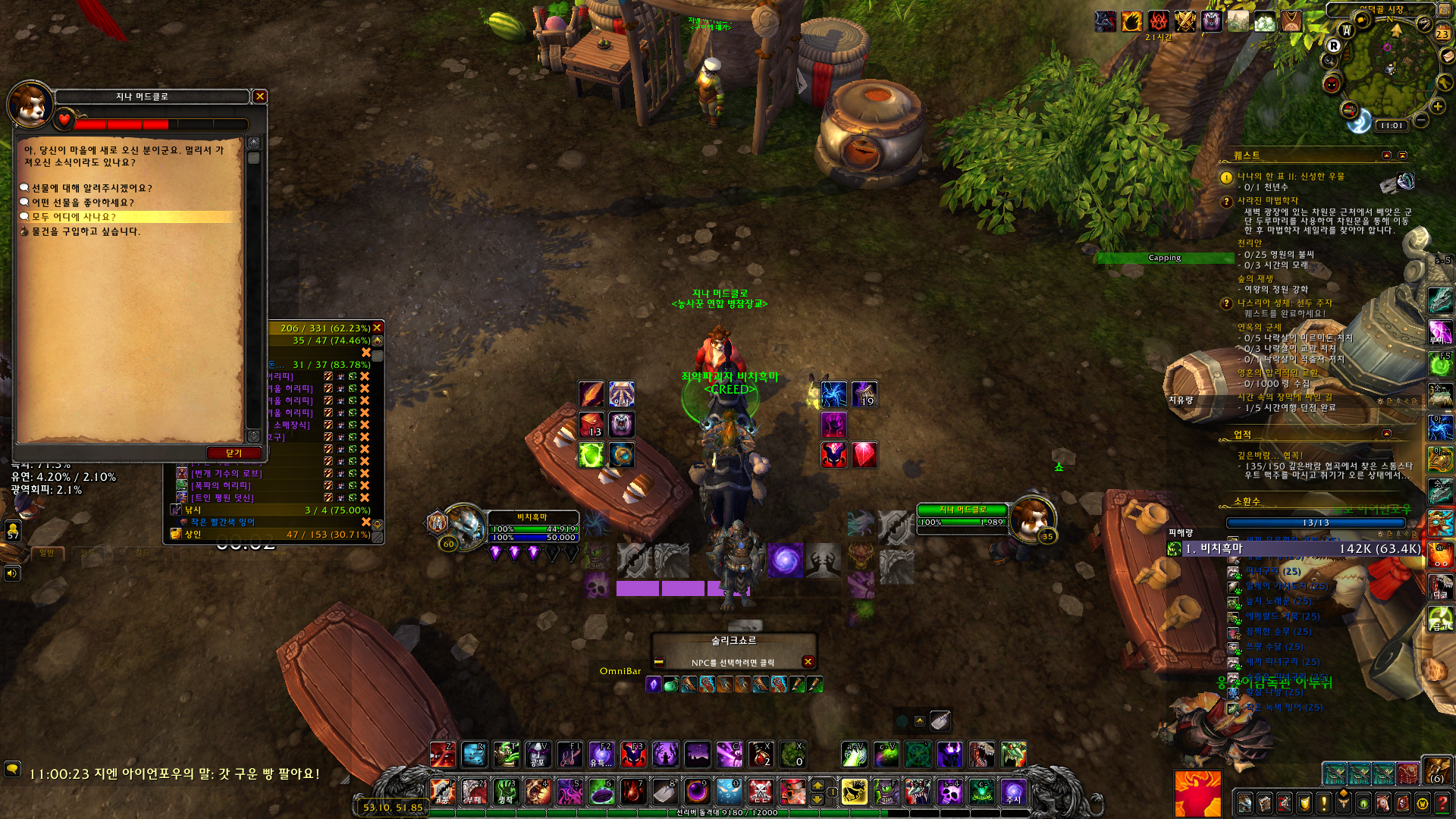 시작퀘스트는 /way 52.10 48.86에 있는 농부 윤이 주는 퀘스트를 하시면 됩니다.