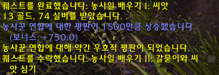 시작퀘스트는 농사일 배우기 1: 씨앗 퀘이고 퀘를 받으시고 연퀘를 쭉 진행하시면 됩니다.