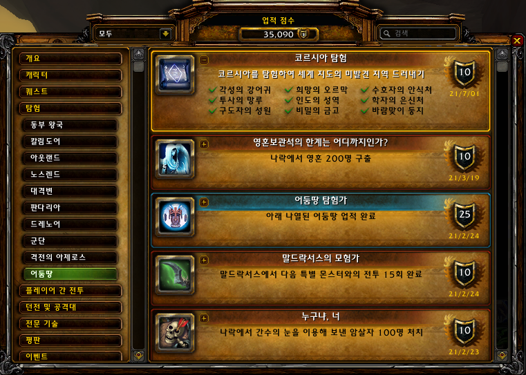 2021.07.01 코르시아 탐험 획득 10점짜리 35090점