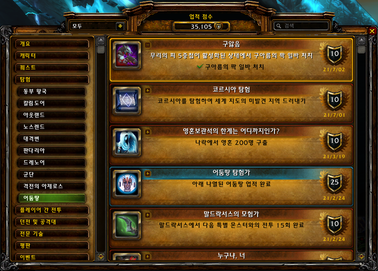 | [와우업적]코르시아 탐험 (0) | 2021.07.01 |