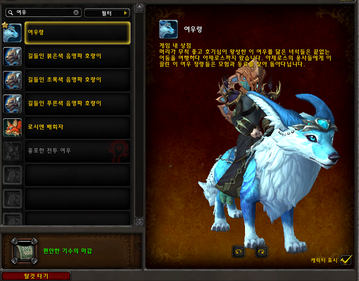 여우령은 블리자드 샵에서 구매하는 탈것입니다.