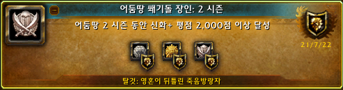 얻는 방법은 2시즌 2000점을 찍어서 어둠땅 쐐기돌 장인: 2 시즌 업적을 띄우면 자동으로 획득가능하고 탈것에 추가됩니다.