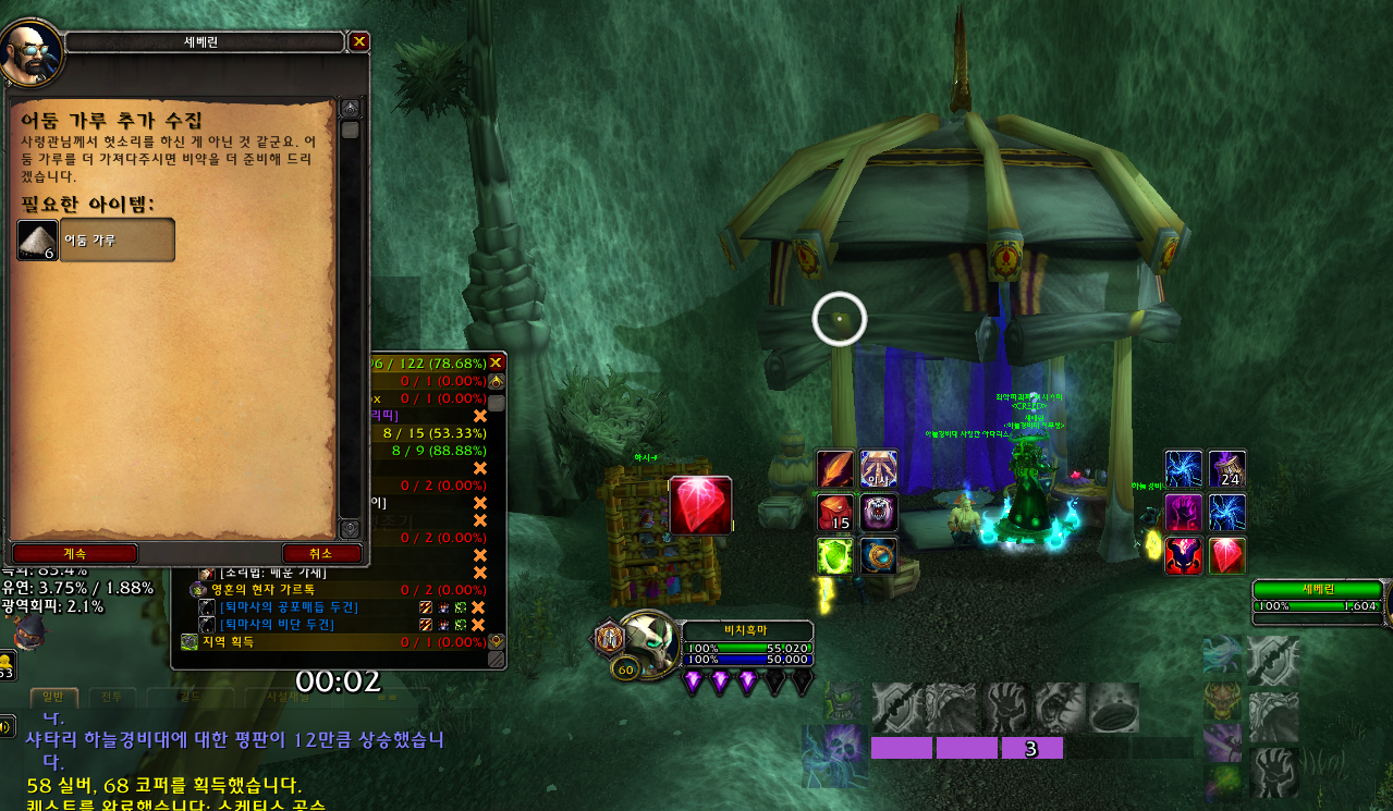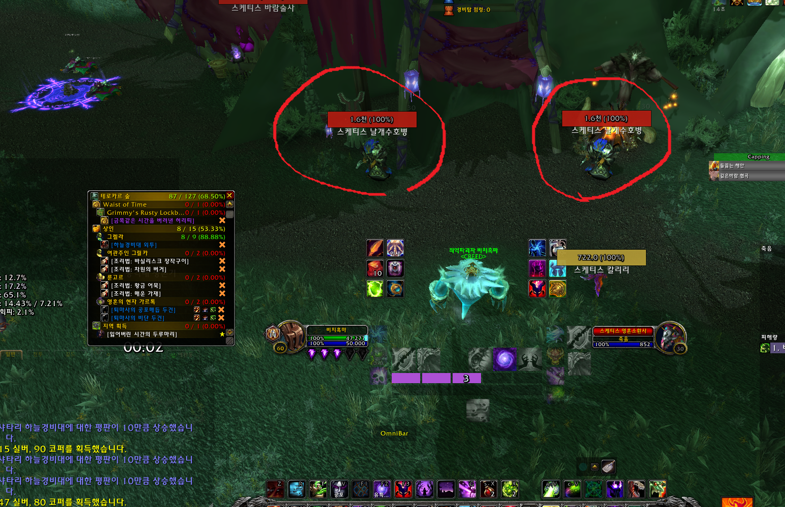 어둠의 비약을 써서 위상으로 들어가서 스케티스 몹들을 계속해서 잡으면서 모이는 어둠가루는 반납하고 잃어버린 시간의 두루마리는 10개마다 몹을 소환해서 잡으면 됩니다.