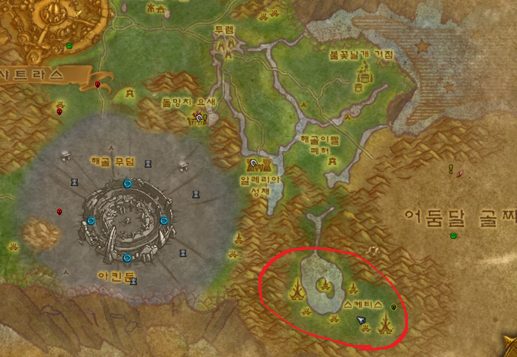 테로카르 숲에서 빨간 동그라미친 지역이 스케티스인데