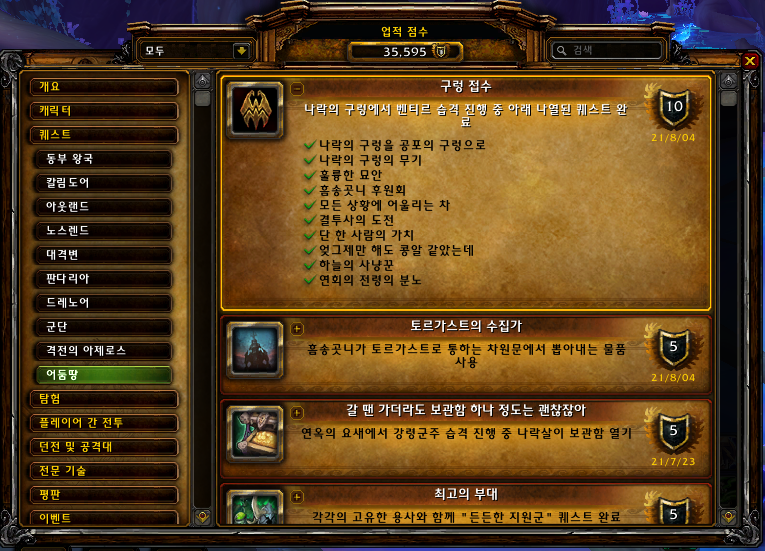2021.08.04 구렁 접수 획득 10점짜리 35595점