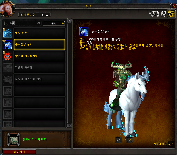 2021.08.06 순수심장 군마 획득 510번째 탈것