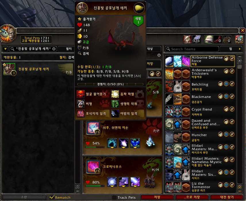 2021.08.08 진홍빛 공포날개 새끼 획득 1261번째 애완동물