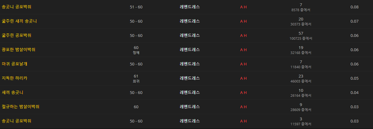 그런데 문제는 드랍률이 정말 낮습니다. 0.08%로 거의한 1,000마리 잡아야 나올까말까한 확률입니다.