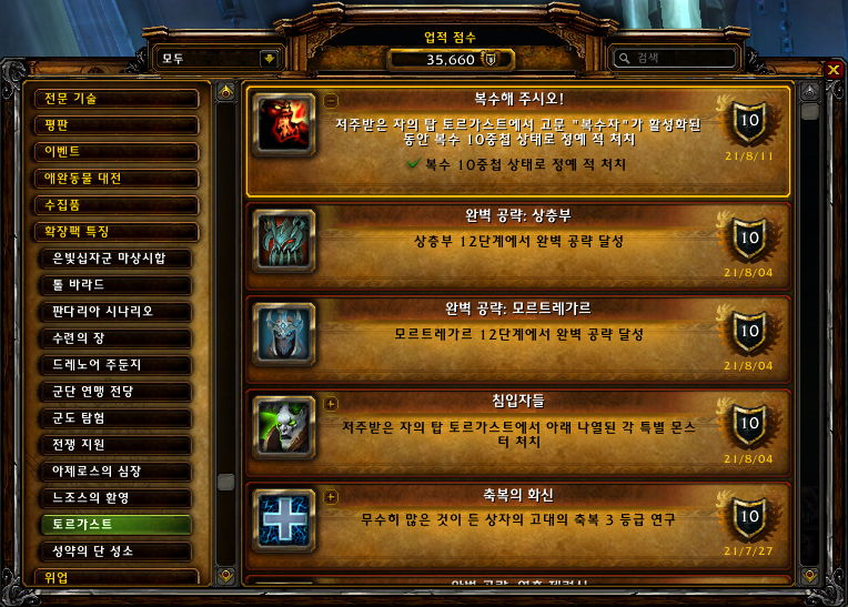 | [와우업적]혼자는 싫어 (1) | 2021.08.12 |