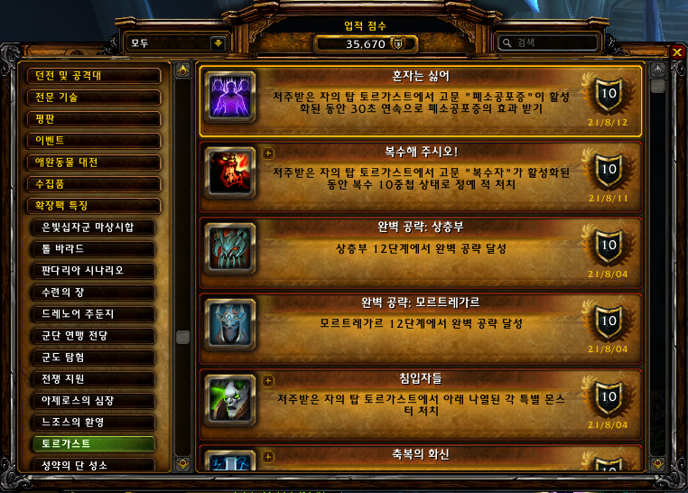 | [와우업적]완벽 공략의 대가 (0) | 2021.08.13 |