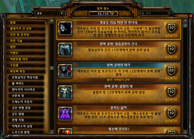 | [와우업적]완벽 공략의 대가 (0) | 2021.08.13 |