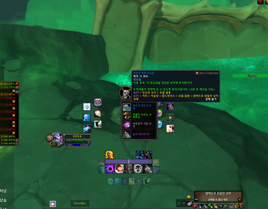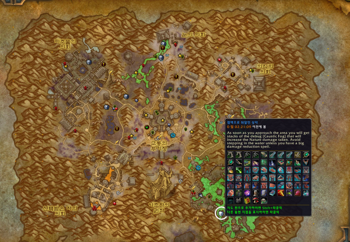 말드락서스 5시방향 역병의 의회쪽에 점액으로 뒤덮인 상자가 젠되었을때만 가능합니다.