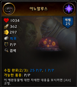 상호작용하는 애완동물은 아제라이트 방울 / 역병살이 수액괴물 / 무지갯빛 수액 / 타락한 피 / 아노말루스 / 보글거리는 피 / 비취 수액덩어리 이렇게 7마리 입니다.