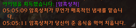 암흑상처 앞에서 맛난 나락버섯을 먹으면 이런식으로 버프가 생기고