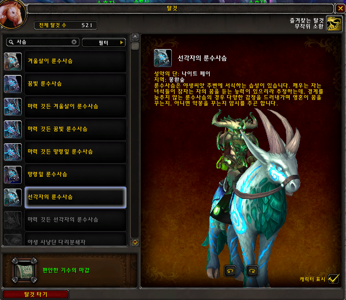 선각자의 룬수사슴은 나이트페이 여왕의정원에서 획득 가능한 탈것입니다.