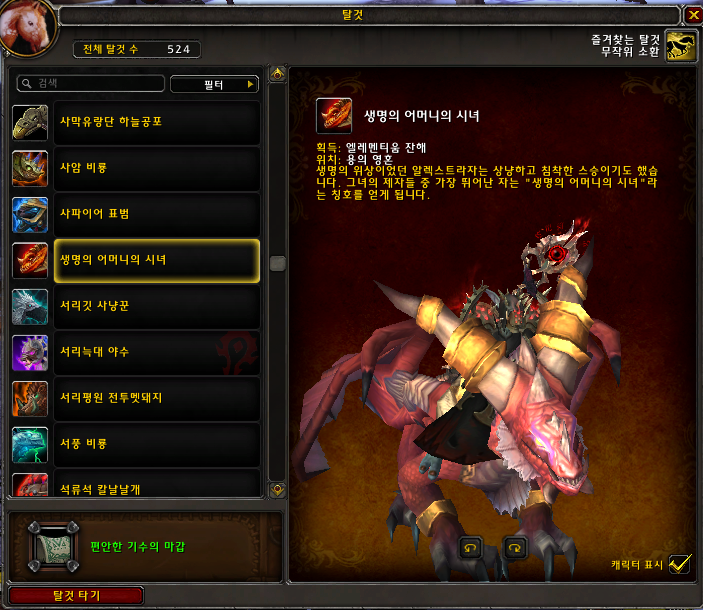 생명의 어머니의 시녀와 타오르는 비룡 무려 탈것을 2개를 드랍합니다. 드랍률은 둘다 1%정도입니다.