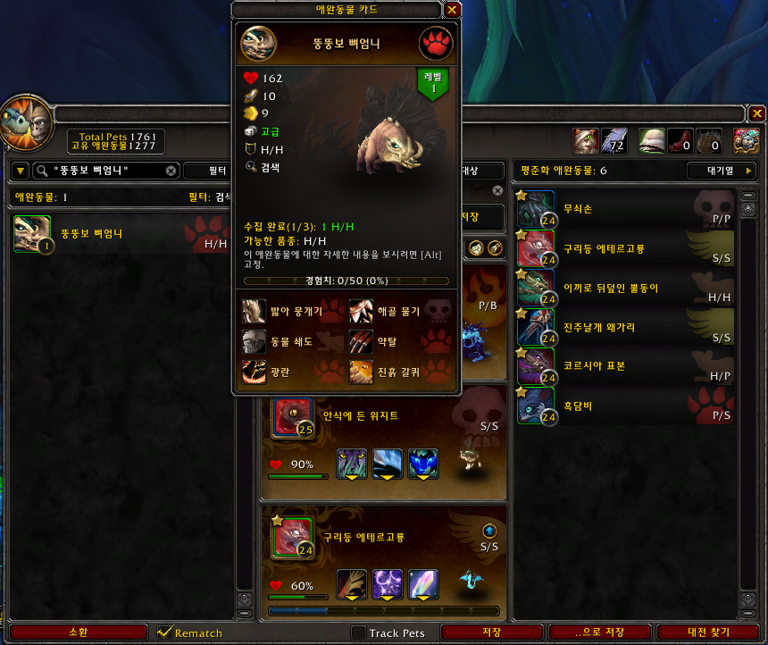 2021.09.11 뚱뚱보 뼈엄니 획득 1277번째 애완동물