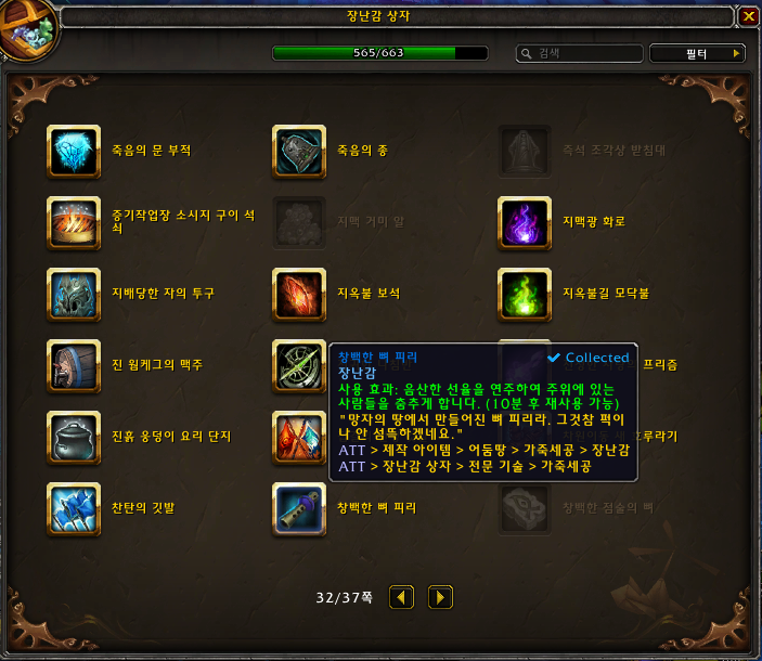 2021.09.12 창백한 뼈 피리 획득 565번째 장난감
