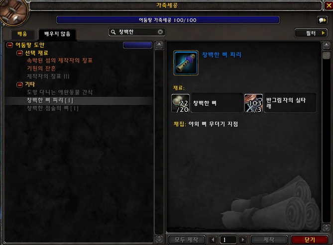 저는 가죽세공이 부캐여서 부캐로 뼈무더기를 열면서 도안을 먹을까하다가