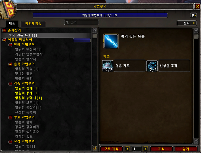 령이 깃든 목줄은 9.1때 추가된 장난감으로 마법부여 캐릭터가 만들수 있습니다.
