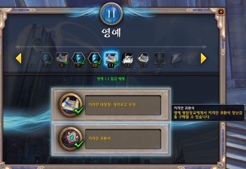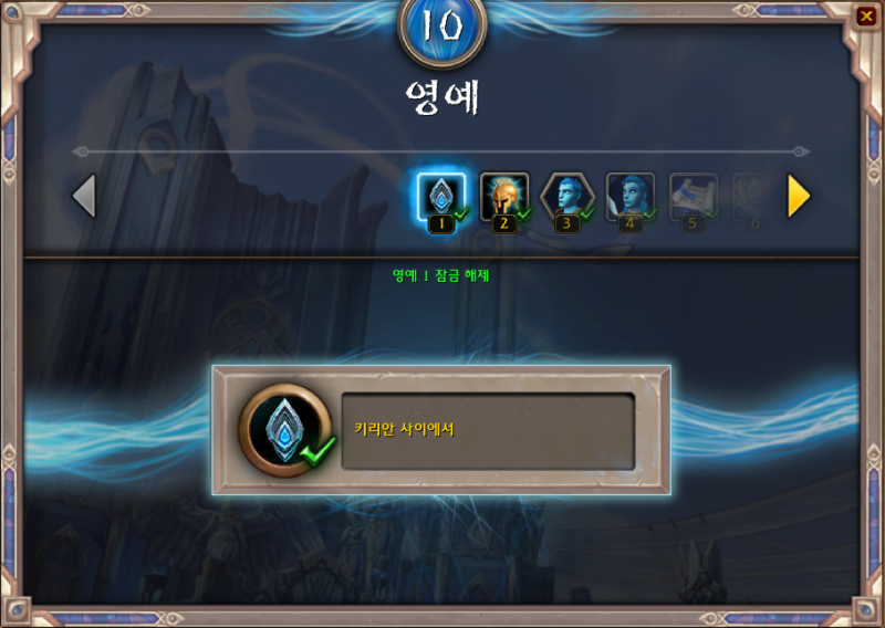 본인의 영예를 확인할수있습니다. 저는 현재10이네요