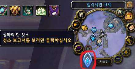 미니맵애드온이 없다는 가정하에 기본 UI이면 시계왼쪽에 성약단 아이콘을 보실수 있습니다. 클릭하면