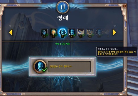 영예가 올라감에 따라 위에 설명드린 영혼결속 특성을 더 찍을수 있다는 뜻입니다.