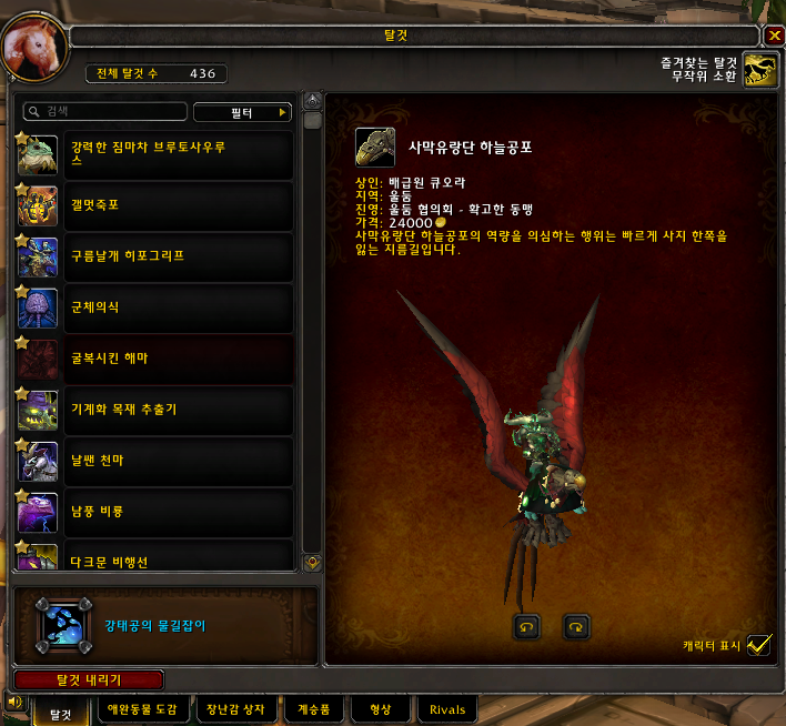 2020.10.22 사막유랑단 하늘공포 획득 436번째 탈것