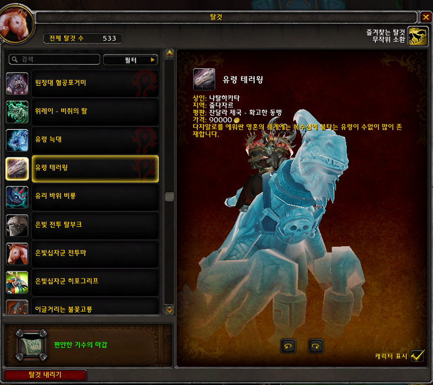 유령 테러윙은 격아평판인 잔달라제국 평판확고를 찍으면 구매 가능합니다.