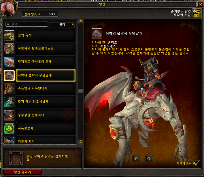 2021.10.08 죄악의 몰락지 무덤날개 획득 537번째 탈것