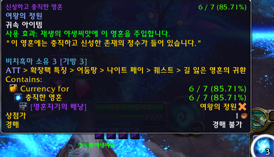 그리고 성약단성소에서주는 영혼구출 20마리하는 퀘스트도 일정확률로 보라색씨앗을 준다고 wowhead에는 쓰여있는데 저는 한번도 못먹었습니다.