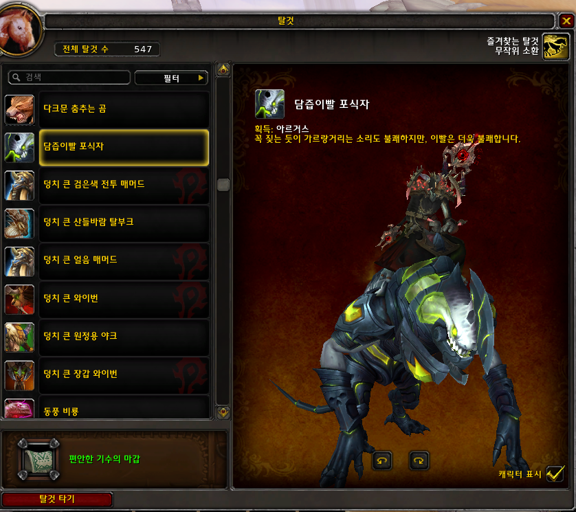 | [와우탈것]전쟁누더기 암흑사냥개 (0) | 2021.10.16 |