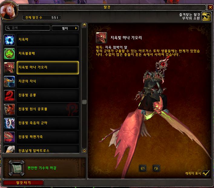 2021.10.25 지옥빛 마나 가오리 획득 551번째 탈것