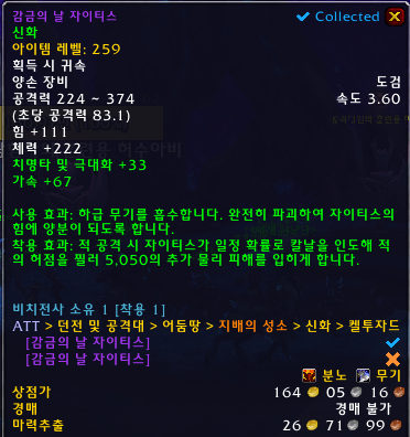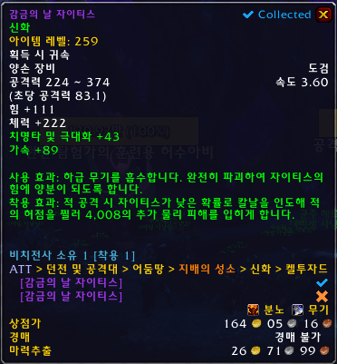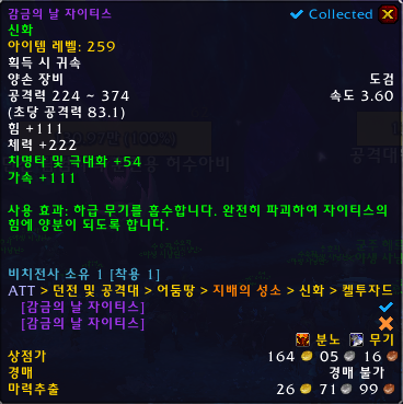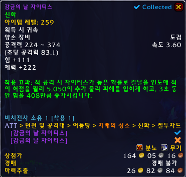 이번에는 163짜리 단검을 사니까 이번에는 자이티스강화에 성공하였습니다.
