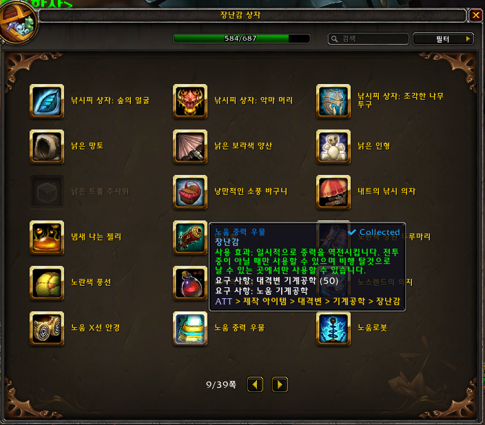 노움 중력 우물 장난감은 대격변장난감으로 기계공학으로 만들고 기계공학만 사용할수있습니다.