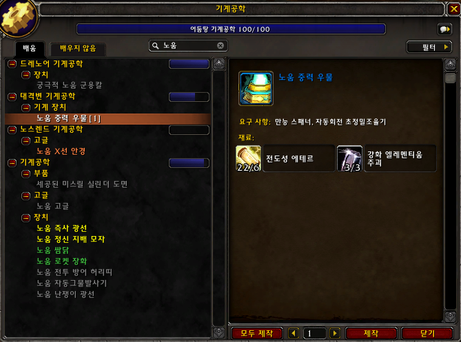 그런데 조건이있습니다. 고블린 기계공학은 안되고 기계공학이면서 노움 기계공학 이어야합니다.