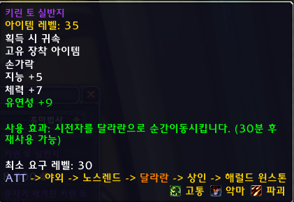 하지만 대신 일반적인 반지가 아니고 귀환기능이 있습니다. 구달라란으로 순간이동 시켜줍니다. 30분 쿨타임입니다.
