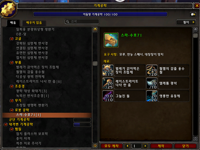혹시 기공숙련도가 100이안되거나 승천자가 확고가 아니신분은 재료 가져오시면 만들어 드리겠습니다.