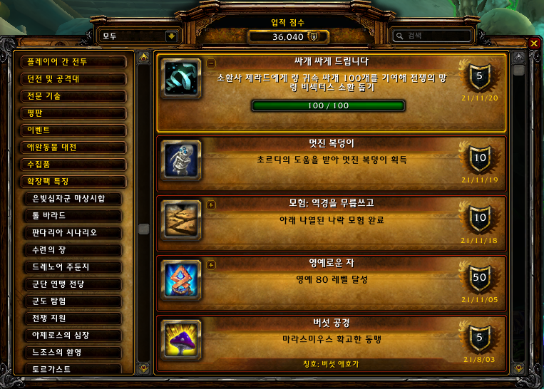 | [와우업적]모험: 역경을 무릅쓰고 (0) | 2021.11.18 |