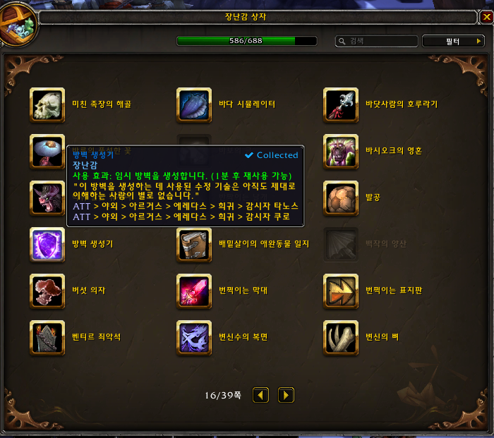 2021.11.21 방벽 생성기 획득 586번째 장난감