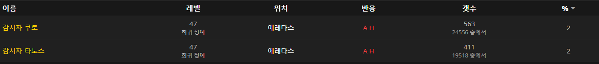 드랍률은 둘다 2%정도입니다.