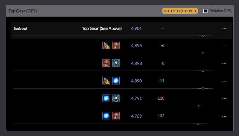 TOP GEAR - 내가 가지고있는 장비중에 가장 좋은장비(가장DPS가높은장비)가 무엇인지 알려주는 기능입니다.