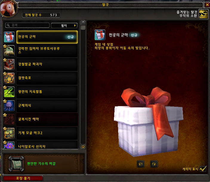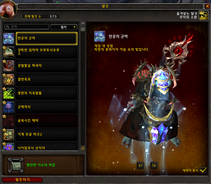 천공의 군마는 블리자드샵에서 구매하는 탈것입니다.