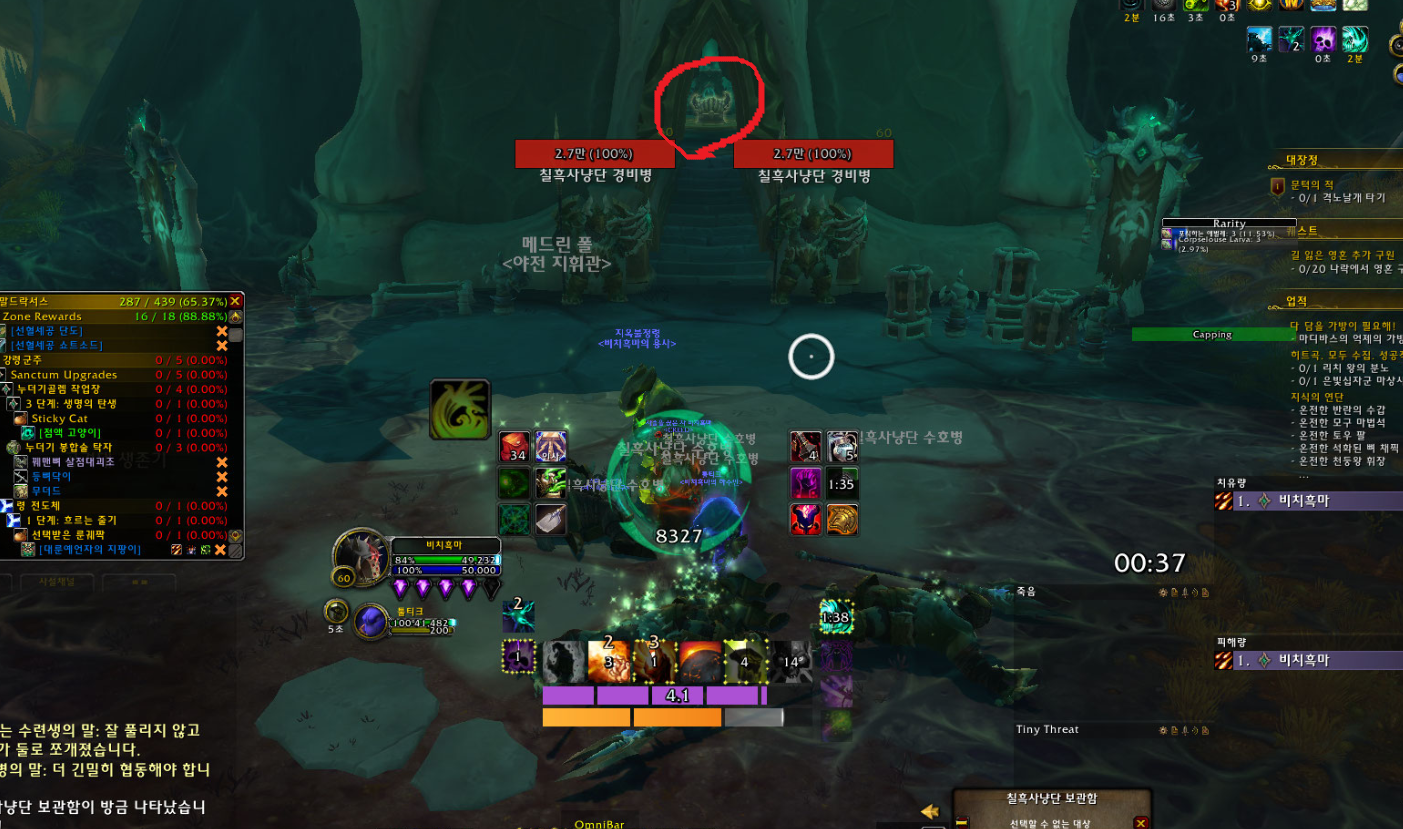 문이 열리면 제가 빨간동그라미친 상자가 보일것입니다. 그상자가 칠흑사냥단 보관함이고 칠흑사냥단 보관함을 열면 일정확률로 획득 가능합니다.