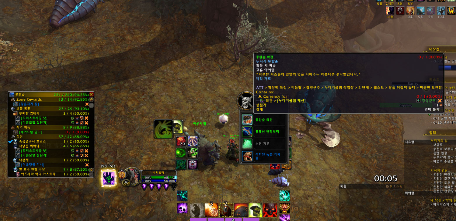 [와우업적]몽환숲의 모험가 - 몽환숲 은테몹(신비한 무지개뿔/티조/휴몽고스/늙은 아르데이트/스