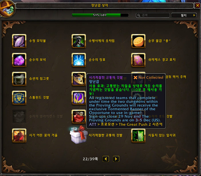 시기적절한 고통의 깃발 장난감은 얼마전에 하였던 The Great Push 시즌2 참가상입니다.