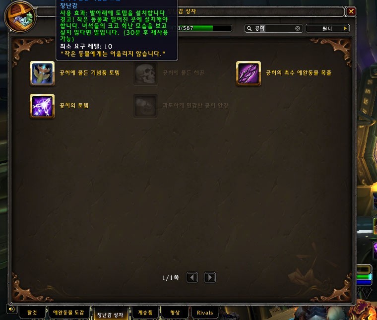 공허에 물든 기념품 토템 장난감은 격전의 아제로스 환영에서 얻을수 있는 장난감입니다.