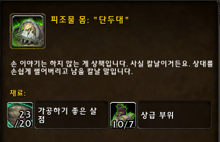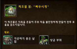 본인이 해당피조물을 못만드는것은 누더기 작업장 단계가 낮기때문입니다. 단결같은 피조물은 5단계가 되어야지만 만들수 있습니다.